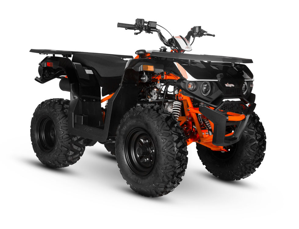 The Bull 180 is a great unit for riders 16 years and older. A low maintenance 4-stroke engine delivers great power and it has a semi-automatic CVT transmission with reverse! The Bull 180 is easy to steer due to the excellent suspension components, yet does not sacrifice ride comfort on the trails and rigged terrain. Combine this engine and suspension with a strong, light weight frame and you have a great ATV suitable for a wide range of riders. The Bull 180 is covered by a 6-month limited warranty.